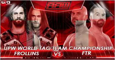 Justin Roberts: Ladies and gentlemen... the following tag team match is scheduled for one fall and is a #1 contenders match for the UPW World Tag Team Championship.... where the winner will face Seth Rollins and Nathan Frazer at WRESTLEMANIA! .... Introducing first..... accompanied by Jim Cornette.... the team of Dax Harwood.... and Cash Wheeler...... they are..... F-T-R!
