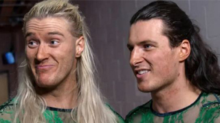 Wir schalten einmal mehr in den Backstage Bereich. Dort sehen wir Pretty Deadly zusammen mit Ilja Dragunov, Jade Cargill und Kenny Omega.