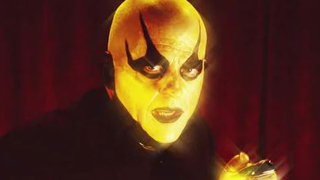 In vollem Pomp, sprich langer Robe, der um seinen Hals liegenden schwarzen Federboa sowie der wallenden Perücke schreitet Goldust zum Ring, während er vom Announcer nun auch offiziell angekündigt wird:
