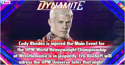 Eric Bischoff: "Ladies and gentlemen last week something happened that changed the Wrestlemania main event. I`m sadly to announce to you that the match Marty Scurll against Cody Rhodes for the World Heavyweight Championship won`t happen at the grandest stage of them all. "
