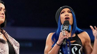 Brandi schaut nach Becky und Bayley während die anderen Weg eskortiert werden.