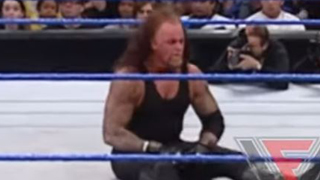 Der Undertaker blickt dann ihm nach und zieht dann Daumen am Hals vorbei. Kenny verschwindet Backstage.