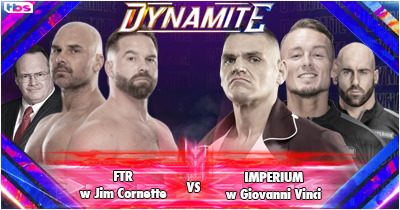Doch Jim Cornette kennt viel schlimmeres als die buhenden Fans die ihn hier in der Halle erwarten. Seine gesamte Karriere hatten die Fans ihn gehasst. Früher sogar versucht ihn abzustechen. Dagegen ist das was hier gerade passiert ein Kinderspiel für ihn. Und so geht er dann ein wenig zur Seite, während er in die Hände klatscht und den Weg frei macht für die zwei Männer die für ihn hier die Stars der Show sind. Dax Harwood und Cash Wheeler. FTR. Die beiden kommen auf der Stage heraus und wirken fokussiert auf die Aufgabe die Ihnen hier bevor steht. Nämlich erneut einen Sieg holen zu müssen gegen Imperium, damit sie bei Wrestlemania auf Frollins treffen können.